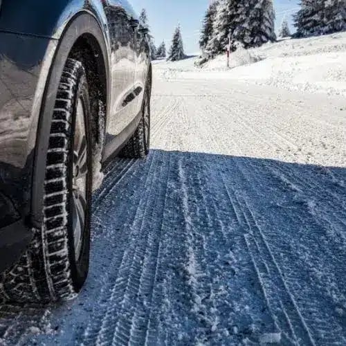 Designed exclusively for use in colder weather, snowy and icy conditions. They deliver superior braking and handling when temperatures dip below 7 degrees Celsius. They are made of materials to allow for the tire to remain pliable in colder weather. They are not meant to be driven in the summer as the heat will wear out the tires. Some winter tires have metal studs to increase traction on ice.